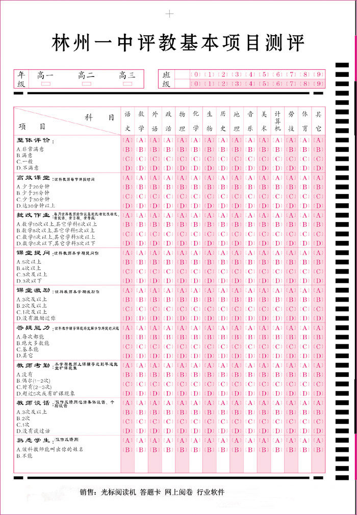 品科光標閱讀機(閱卷機)的使用范圍:主要應用于國內外考試評卷、考試報名、志愿統計、各行各業的干部測評、考核、選舉、數據采集。現在品科的光標閱讀機產品已經在全國30幾個省市的重點初中、重點高中、重點大學使用開了。給廣大用戶提供了方便快捷,售后服務周到的印象。