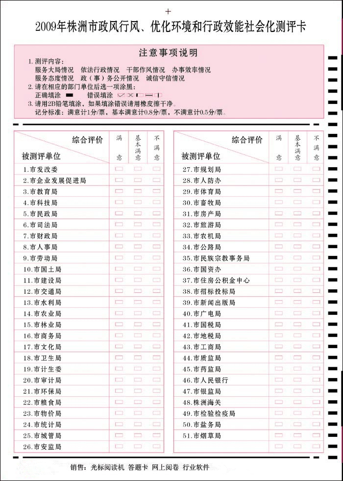 政風(fēng)行風(fēng)、優(yōu)化環(huán)境和行政效能社會化測評卡